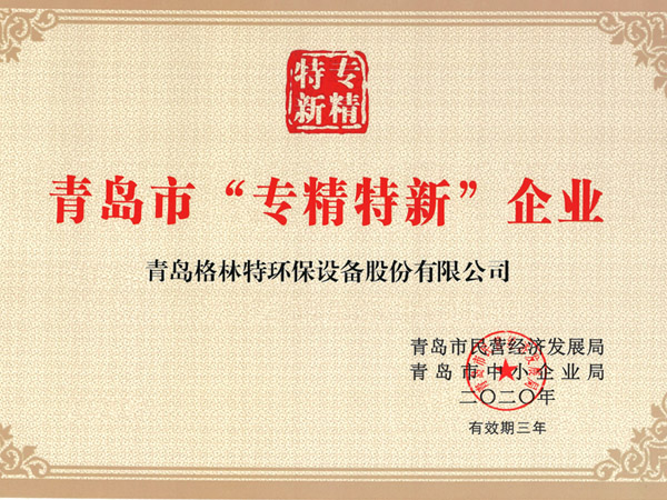 2020年,我公司憑借自主創新研制、具有自主知識產權的發明專利——電動螺旋油壓機,獲評"青島市專精特新企業”。今后公司將堅持自主創新,在環境污染防治設備方面不斷突破關鍵技術,研發污染防治新產品、新設備,加快企業轉型升級和提質增效,培育新的企業核心競爭力。