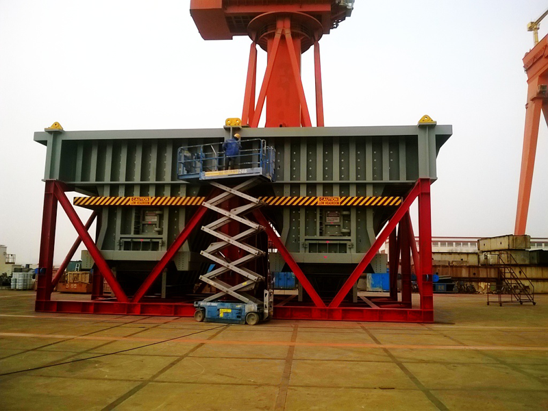 緩沖料斗,它由兩個較大的下部和六個上部平臺組成。它長16米,寬8.3米,高9.2米。我們在工廠里完成了零件,在港口里完成了全部的組裝工作,這樣可以大大減少現場工作量。