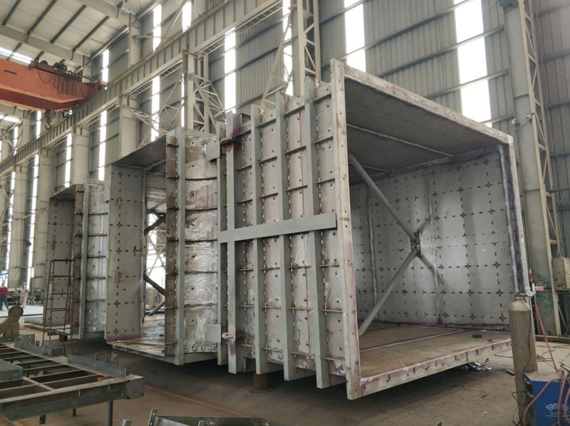 下圖是我們在2019年為JFE制造的不銹鋼煙風道。所有煙風道均采用316L不銹鋼制作,配碳鋼框架。圓煙道的最大直徑為5.782m *12m(長),方煙道的最大尺寸為6.5m*5.6m*5.45m。